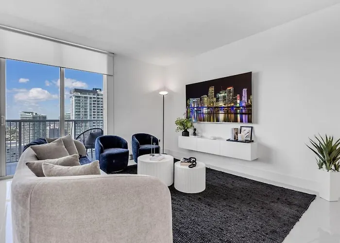 Die 2-Zimmer-Villa Luxe Brickell Gem With Huge Balcony N Ocean Views liegt im Stadtteil Downtown Miami und bietet Gästen einen Dachpool, einen Jacuzzi.